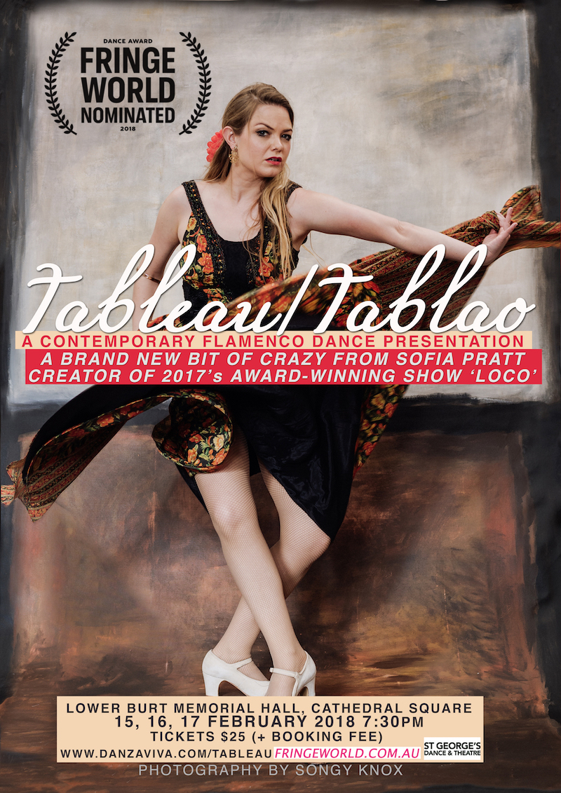 Danza Viva’s Director Sofia Pratt’s 2018 Fringe show ‘Tableau/Tablao’ has been nominated for the Dance Award! Tableau/Tablao ran for three nights at the Lower Burt Memorial Hall at Cathedral Square.